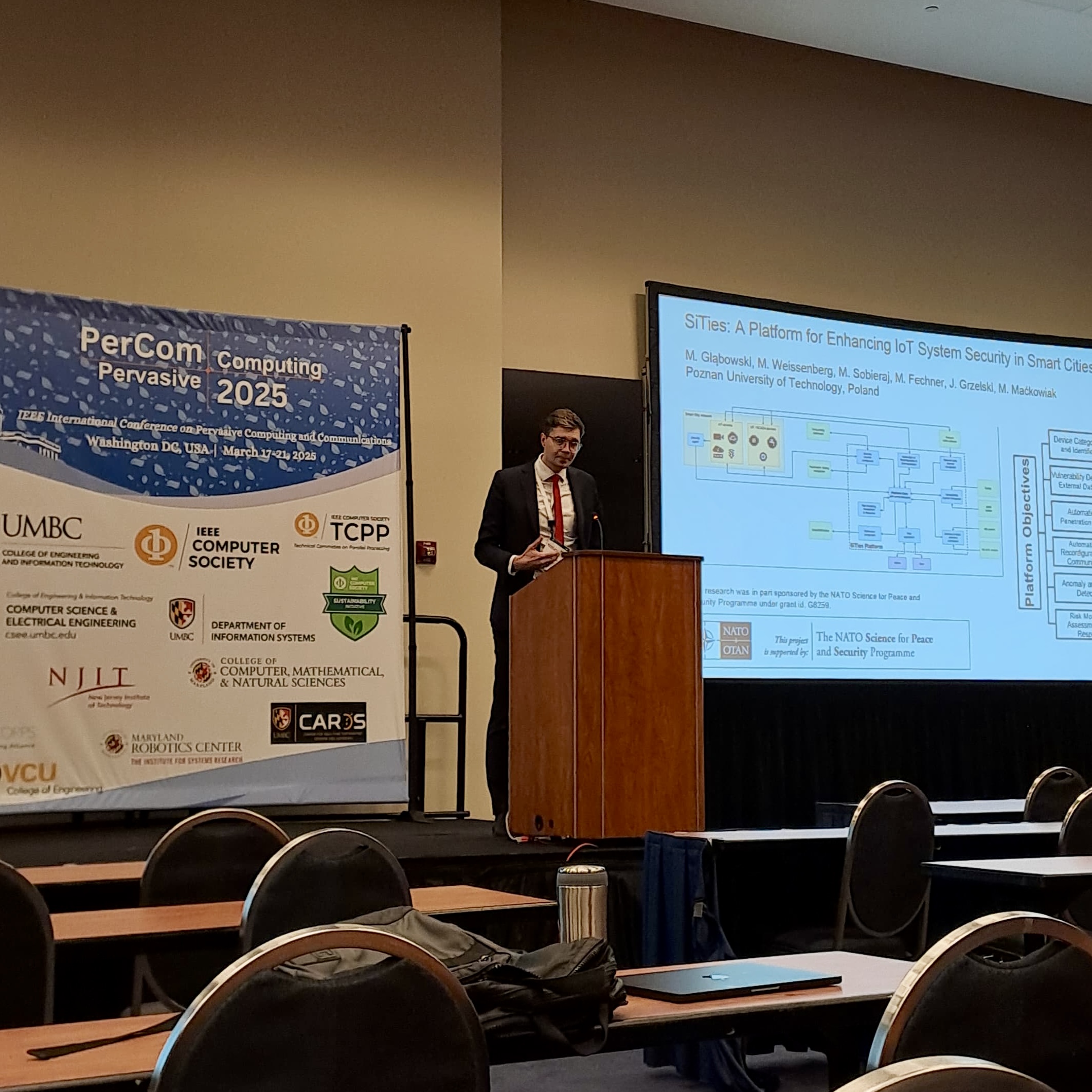 During the IEEE PerCom 2025 conference in Washington, D.C., Michał Weissenberg presented the results of the “Enhancing IoT Systems Security” project in the paper titled “SiTies: A Platform for Enhancing IoT System Security in Smart Cities.”